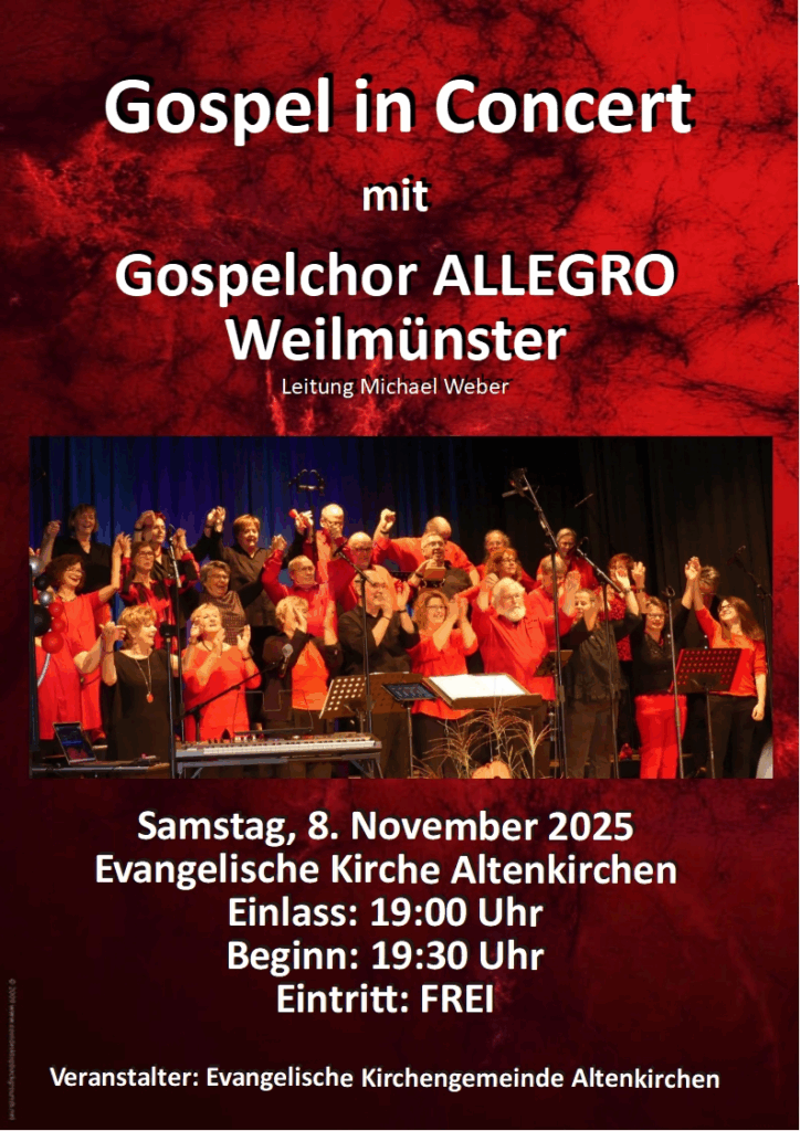 Herzlich willkommen beim Gospelchor Allegro der ev. Kirchengemeinde Weilmünster.